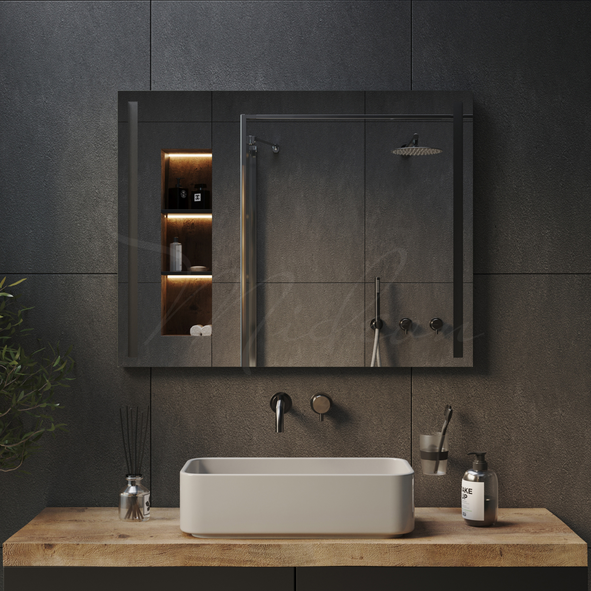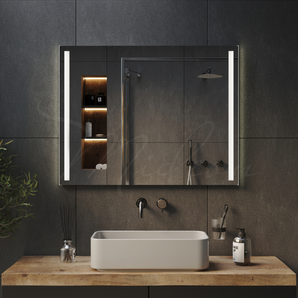 Все наши зеркала с закрытой подсветкой имеют толщину всего 24 мм благодаря применению современной LED (светодиодной) подсветки, премиальных комплектующих и собственным производственным наработкам.